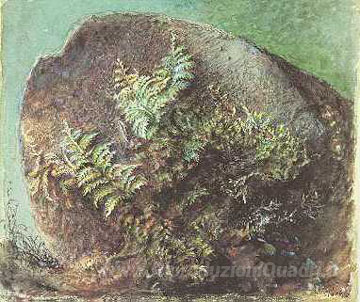 Ti offriamo una riproduzione artigianale su tela dell'opera famosa 'Felci su una roccia' di John Ruskin, dal Museo delle Riproduzioni.