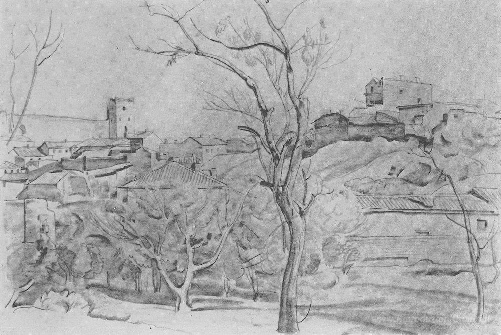 Ti offriamo una riproduzione artigianale su tela dell'opera famosa 'Feodosia' di Konstantin Bogaevsky, dal Museo delle Riproduzioni.
