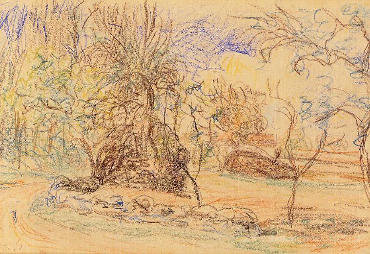 Ti offriamo una riproduzione artigianale su tela dell'opera famosa 'Frutteto' di Alfred Sisley, dal Museo delle Riproduzioni.