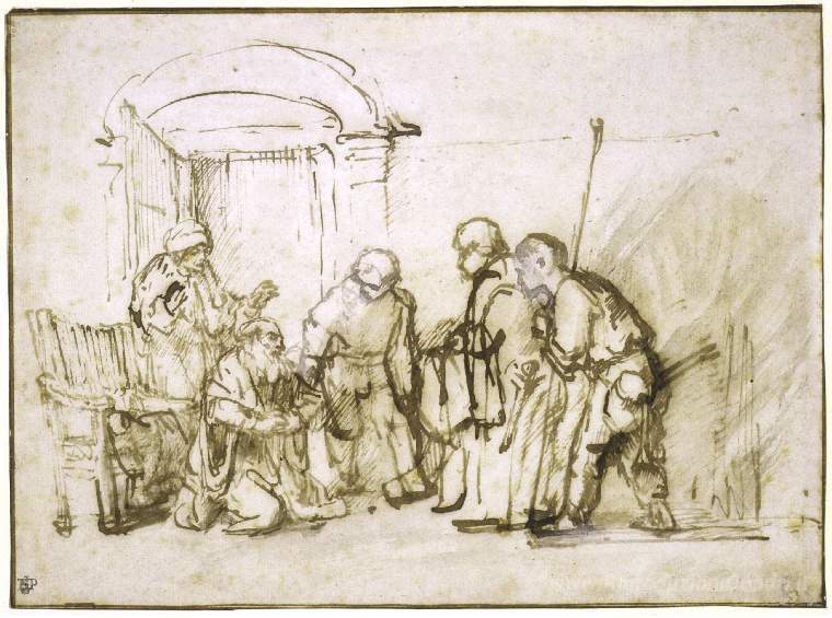 Ti offriamo una riproduzione artigianale su tela dell'opera famosa 'Giacobbe mostrato Coat Bloodstained di Giuseppe' di Rembrandt, dal Museo delle Riproduzioni.