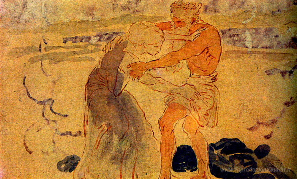 Scoprite l'emozione palpabile e la profondità narrativa del dipinto Giacobbe non lasciare andare un angelo che lotta con lui, realizzato dal maestro Alexander Ivanov. Questo capolavoro, che si distingue per la sua intensa espressività e la maestria tecnica, rappresenta un momento cruciale della storia biblica, immortalando la lotta tra Giacobbe e l'angelo. Ivanov, un pioniere del romanticismo, combina una straordinaria attenzione ai dettagli con una palette di colori vibranti, creando un'atmosfera di tensione e spiritualità.