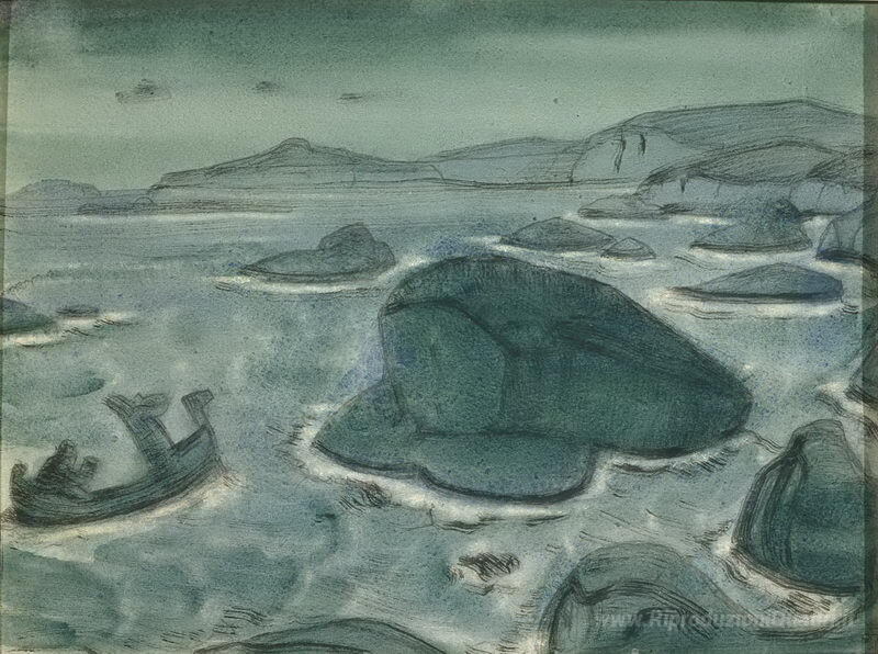 Ti offriamo una riproduzione artigianale su tela dell'opera famosa 'Giantess Krimgerd' di Nicholas Roerich, dal Museo delle Riproduzioni.