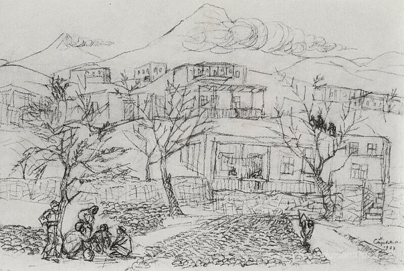 Ti offriamo una riproduzione artigianale su tela dell'opera famosa 'Giardini e Ararat' di Martiros Saryan, dal Museo delle Riproduzioni.