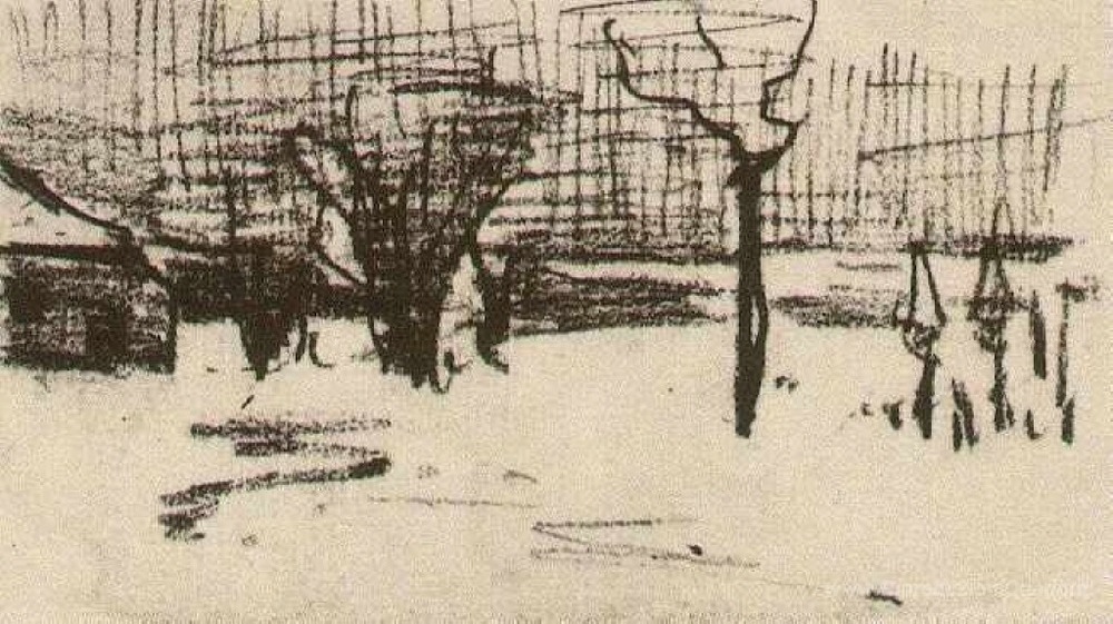 Ti offriamo una riproduzione artigianale su tela dell'opera famosa 'Giardino nella neve' di Vincent van Gogh, dal Museo delle Riproduzioni.