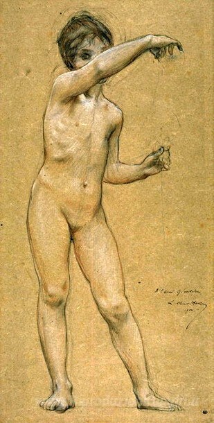Ti offriamo una riproduzione artigianale su tela dell'opera famosa 'Giovane ragazza nuda' di Luc-Olivier Merson, dal Museo delle Riproduzioni.