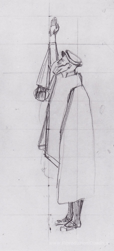 Ti offriamo una riproduzione artigianale su tela dell'opera famosa 'Giurando di sinistra' di Ferdinand Hodler, dal Museo delle Riproduzioni.