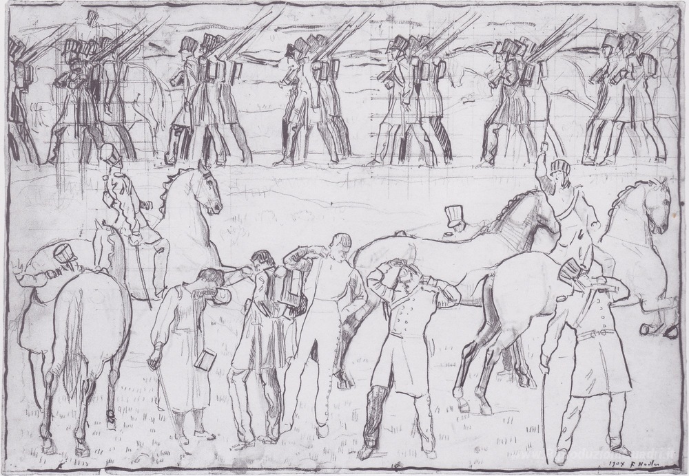 Ti offriamo una riproduzione artigianale su tela dell'opera famosa 'Gli studenti tedeschi nella guerra di Liberazione del 1813' di Ferdinand Hodler, dal Museo delle Riproduzioni.