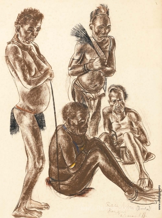 Ti offriamo una riproduzione artigianale su tela dell'opera famosa 'Gli uomini della Banda Tribe' di Alexandre Jacovleff, dal Museo delle Riproduzioni.