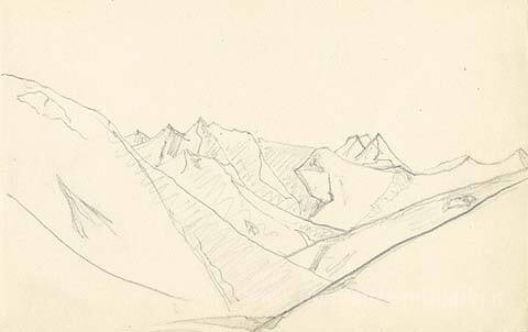 Ti offriamo una riproduzione artigianale su tela dell'opera famosa 'Guri Guri Dhar cresta' di Nicholas Roerich, dal Museo delle Riproduzioni.