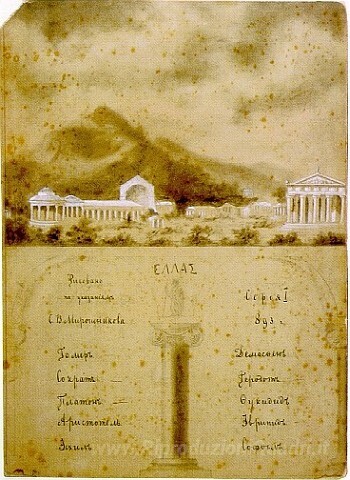 Ti offriamo una riproduzione artigianale su tela dell'opera famosa 'Hellas' di Nicholas Roerich, dal Museo delle Riproduzioni.