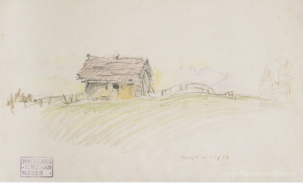 Ti offriamo una riproduzione artigianale su tela dell'opera famosa 'Hut in Leysin' di Koloman Moser, dal Museo delle Riproduzioni.