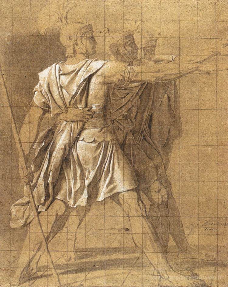 Ti offriamo una riproduzione artigianale su tela dell'opera famosa 'I tre fratelli Orazi' di Jacques-Louis David, dal Museo delle Riproduzioni.