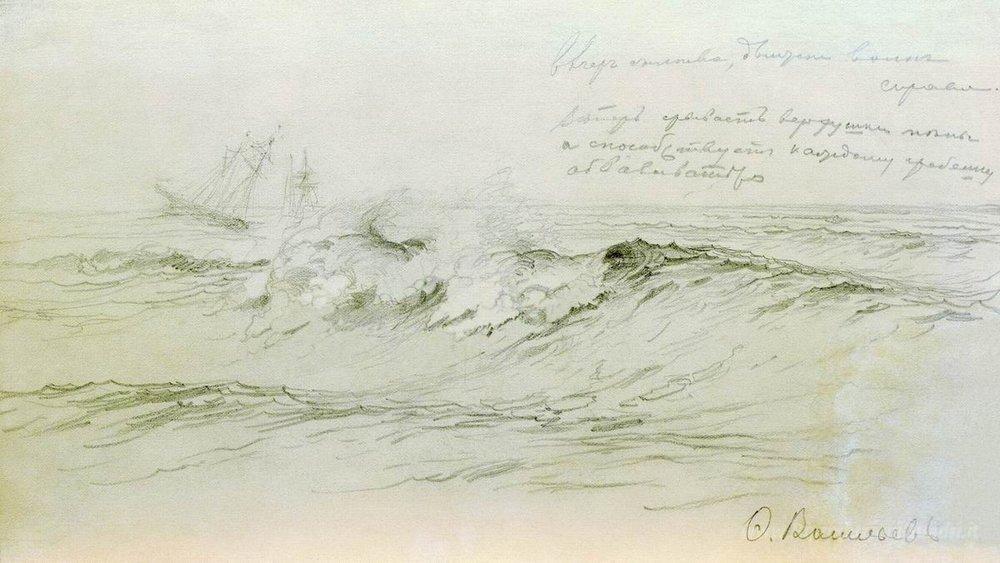 Ti offriamo una riproduzione artigianale su tela dell'opera famosa 'Il mare con le navi' di Fyodor Vasilyev, dal Museo delle Riproduzioni.