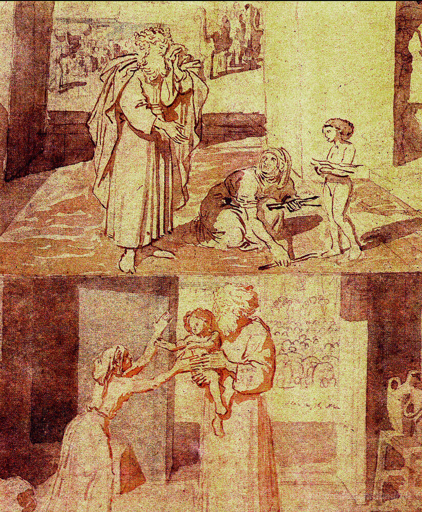 Ti offriamo una riproduzione artigianale su tela dell'opera famosa 'Il profeta Elia e la vedova sareptana' di Alexander Ivanov, dal Museo delle Riproduzioni.