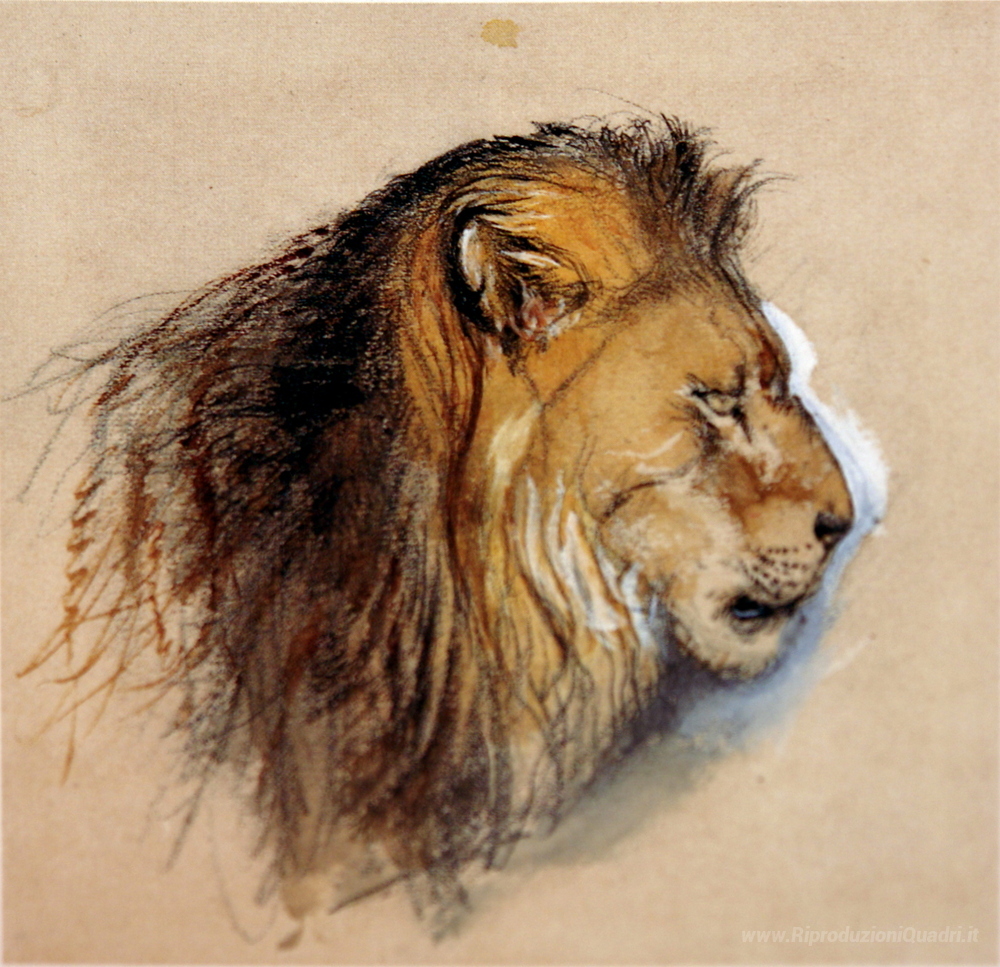 Ti offriamo una riproduzione artigianale su tela dell'opera famosa 'Il profilo di leone dalla vita' di John Ruskin, dal Museo delle Riproduzioni.