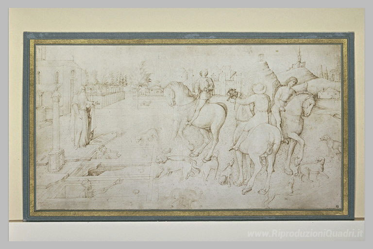 Ti offriamo una riproduzione artigianale su tela dell'opera famosa 'Il Tre morti e tre forte' di Jacopo Bellini, dal Museo delle Riproduzioni.