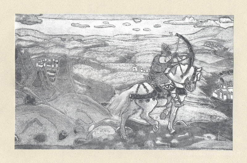 Ti offriamo una riproduzione artigianale su tela dell'opera famosa 'Il'ja Muromec' di Nicholas Roerich, dal Museo delle Riproduzioni.