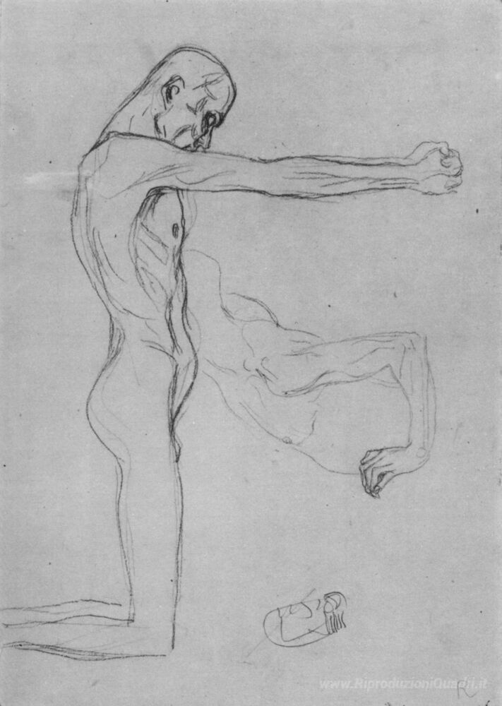 Ti offriamo una riproduzione artigianale su tela dell'opera famosa 'In ginocchio nudo maschile con sdraiato Arms, Torso maschile' di Gustav Klimt, dal Museo delle Riproduzioni.