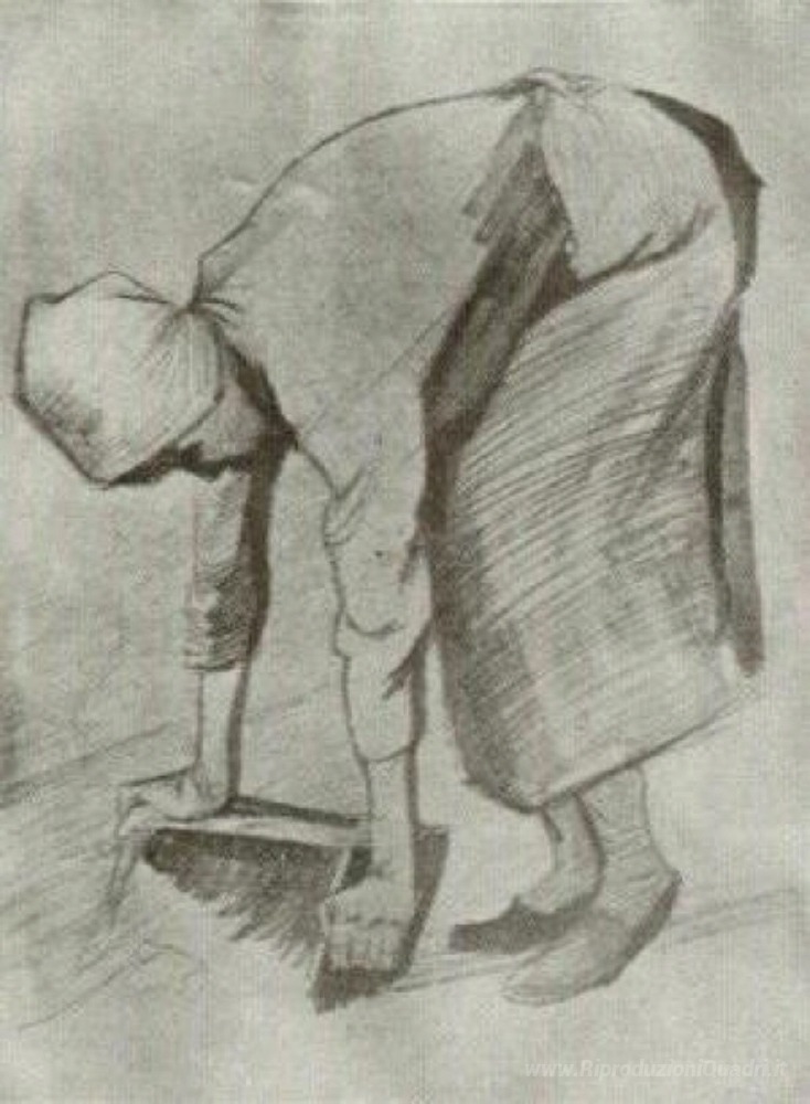 Ti offriamo una riproduzione artigianale su tela dell'opera famosa 'Inarcare la schiena Donna' di Vincent van Gogh, dal Museo delle Riproduzioni.