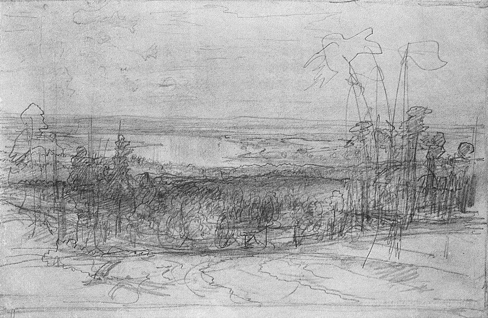 Ti offriamo una riproduzione artigianale su tela dell'opera famosa 'Inondazioni dei fiumi, come i mari' di Ivan Shishkin, dal Museo delle Riproduzioni.