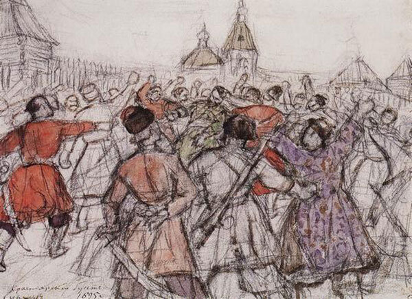 Ti offriamo una riproduzione artigianale su tela dell'opera famosa 'Krasnoyarsk ribellione' di Vasily Surikov, dal Museo delle Riproduzioni.
