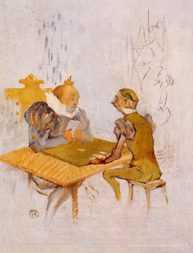Ti offriamo una riproduzione artigianale su tela dell'opera famosa 'La Bella e la Bestia La Bezique' di Henri de Toulouse-Lautrec, dal Museo delle Riproduzioni.