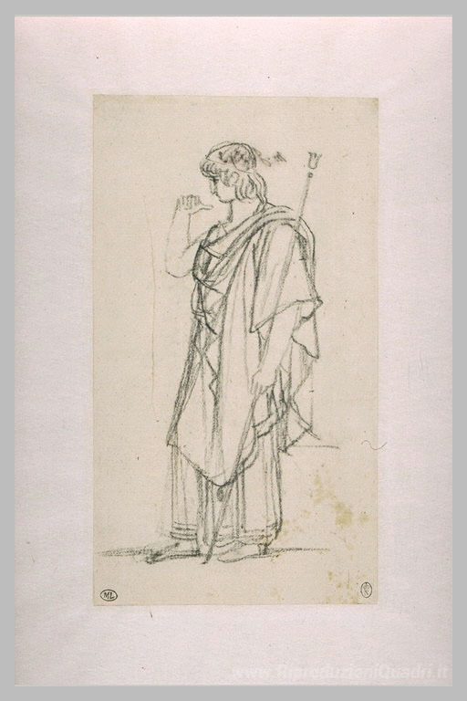 Ti offriamo una riproduzione artigianale su tela dell'opera famosa 'La figura di Oreste, in piedi drappeggiato' di Pierre-Narcisse Guerin, dal Museo delle Riproduzioni.
