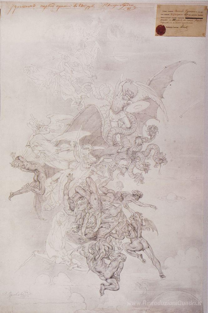 Ti offriamo una riproduzione artigianale su tela dell'opera famosa 'La lotta di spiriti buoni contro gli spiriti maligni' di Vasily Surikov, dal Museo delle Riproduzioni.
