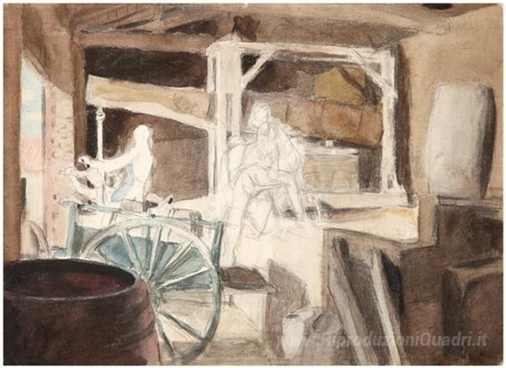 Ti offriamo una riproduzione artigianale su tela dell'opera famosa 'La préparation du canon' di Pierre Roy, dal Museo delle Riproduzioni.