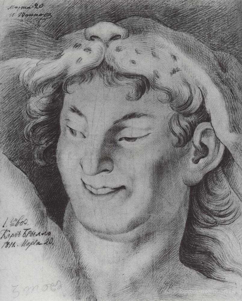 Ti offriamo una riproduzione artigianale su tela dell'opera famosa 'La testa di Bacco' di Karl Bryullov, dal Museo delle Riproduzioni.