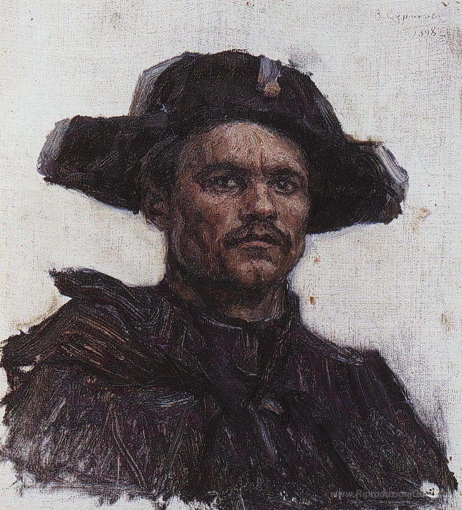Ti offriamo una riproduzione artigianale su tela dell'opera famosa 'La testa di soldato-batterista' di Vasily Surikov, dal Museo delle Riproduzioni.
