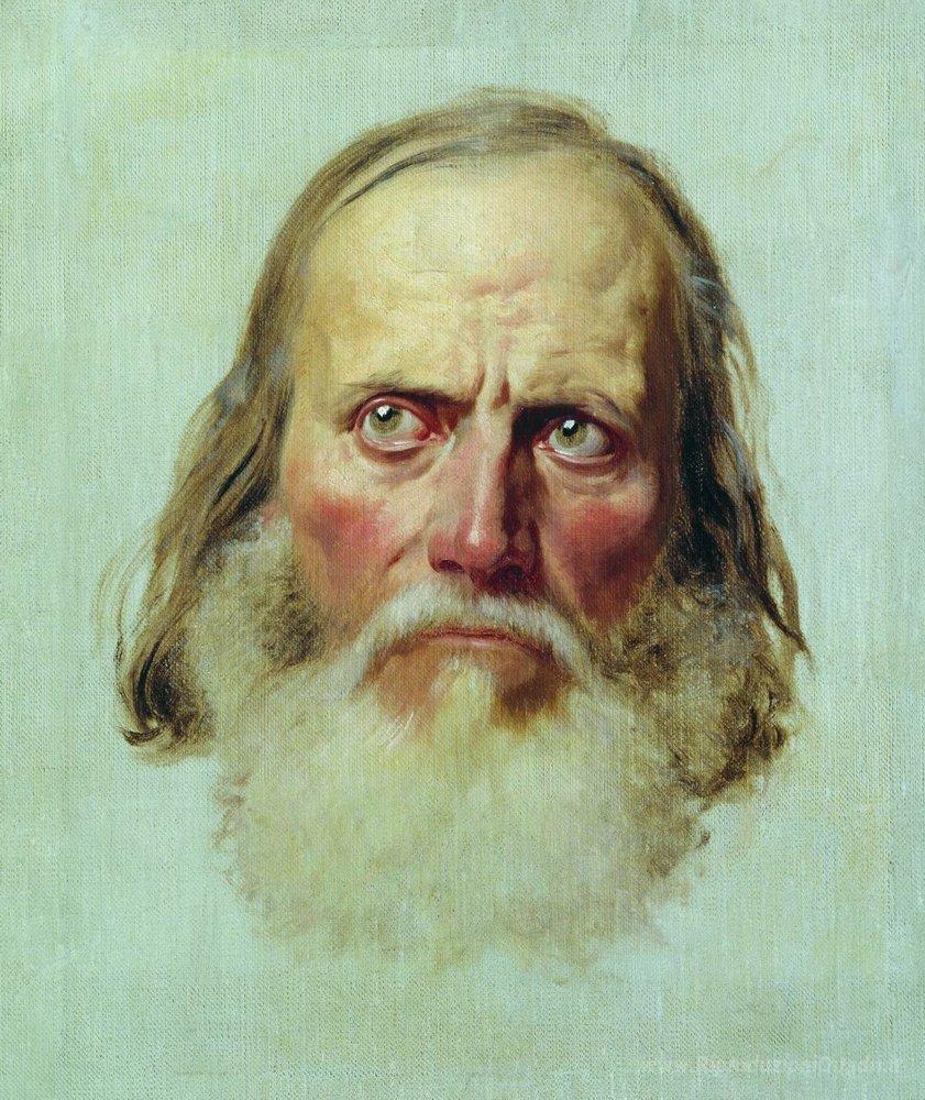 Ti offriamo una riproduzione artigianale su tela dell'opera famosa 'La testa di un uomo anziano' di Fyodor Bronnikov, dal Museo delle Riproduzioni.