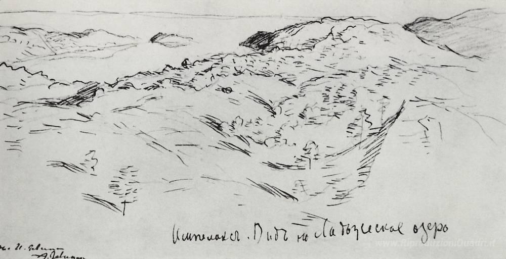 Ti offriamo una riproduzione artigianale su tela dell'opera famosa 'Lago Ladoga' di Isaac Levitan, dal Museo delle Riproduzioni.