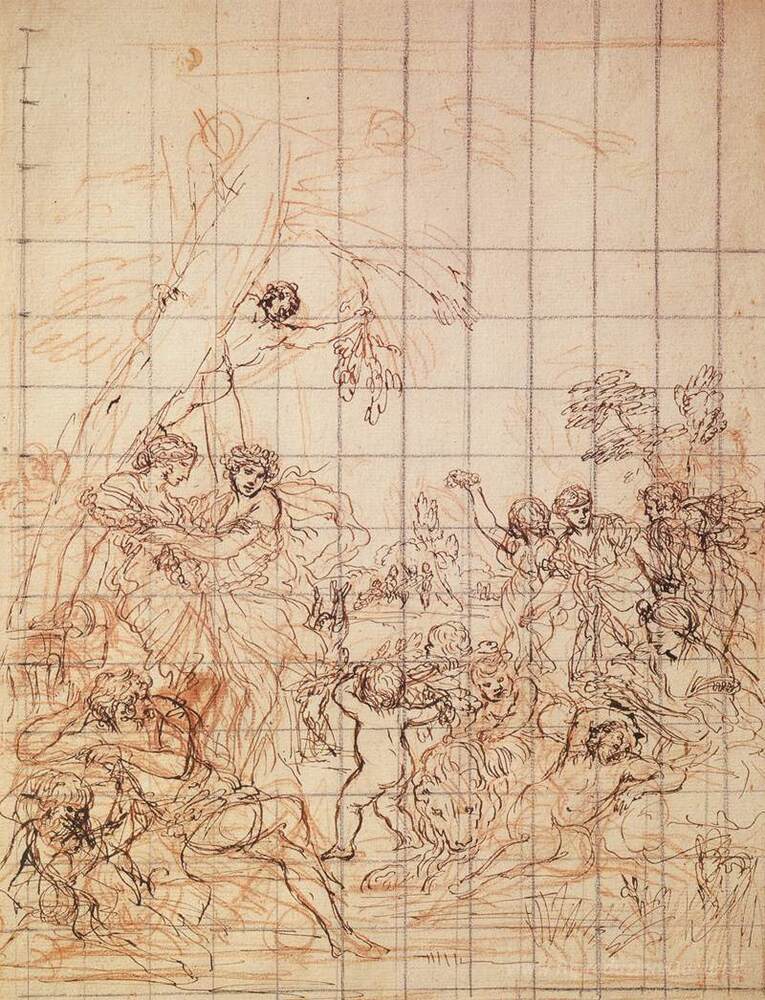 Ti offriamo una riproduzione artigianale su tela dell'opera famosa 'L'età d'oro' di Pietro da Cortona, dal Museo delle Riproduzioni.