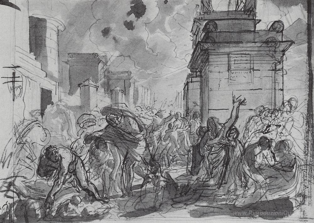 Scoprite l'emozione e la potenza espressiva del dipinto a olio L'ultimo giorno di Pompei, realizzato dal maestro Karl Bryullov, una delle figure più influenti del Romanticismo russo. Questo capolavoro, datato 1833, cattura l'istante tragico ed eroico dell'eruzione del Vesuvio, trasportando lo spettatore in un'atmosfera ricca di tensione e drammaticità. La pennellata sapiente di Bryullov, unita a una paletta di colori vibranti, riesce a rendere palpabile il tumulto emotivo dei personaggi raffigurati.