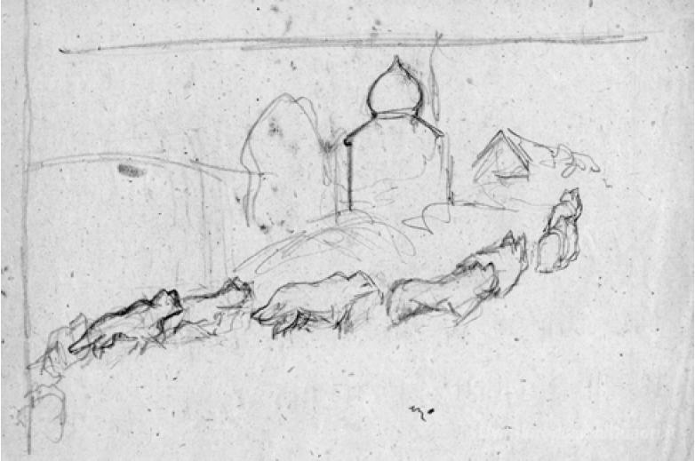 Ti offriamo una riproduzione artigianale su tela dell'opera famosa 'Lupi' di Nicholas Roerich, dal Museo delle Riproduzioni.