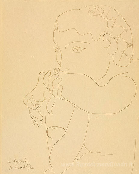 Ti offriamo una riproduzione artigianale su tela dell'opera famosa 'Lydia con i capelli in una rete' di Henri Matisse, dal Museo delle Riproduzioni.