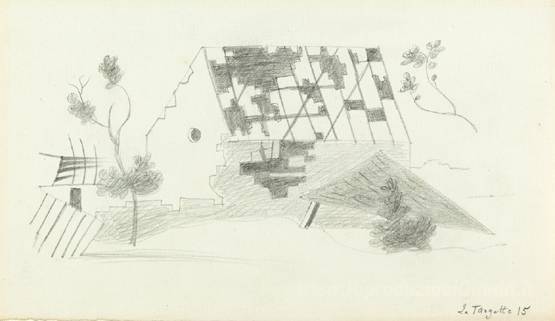Ti offriamo una riproduzione artigianale su tela dell'opera famosa 'Maison en ruine a la Targette' di Jean Hugo, dal Museo delle Riproduzioni.