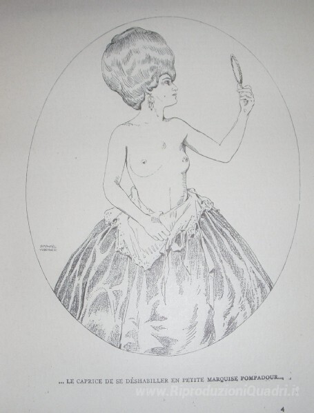 Ti offriamo una riproduzione artigianale su tela dell'opera famosa 'Marquisette' di Raphael Kirchner, dal Museo delle Riproduzioni.
