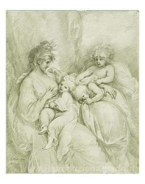 Ti offriamo una riproduzione artigianale su tela dell'opera famosa 'Maternità' di Benjamin West, dal Museo delle Riproduzioni.