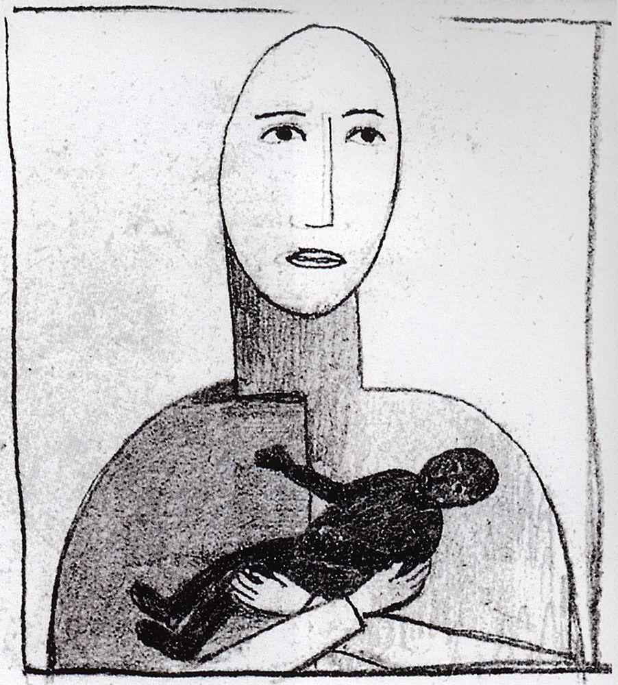 Ti offriamo una riproduzione artigianale su tela dell'opera famosa 'Maternità' di Kazimir Malevich, dal Museo delle Riproduzioni.