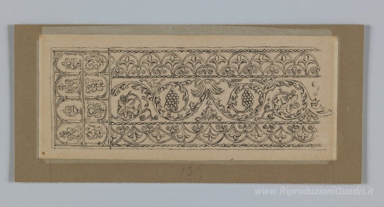 Ti offriamo una riproduzione artigianale su tela dell'opera famosa 'Metallo Ornamento Tratto da Moschea di Es Sakra' di James Tissot, dal Museo delle Riproduzioni.
