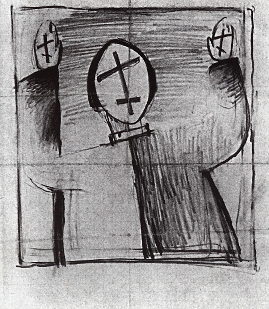 Ti offriamo una riproduzione artigianale su tela dell'opera famosa 'Mistico' di Kazimir Malevich, dal Museo delle Riproduzioni.