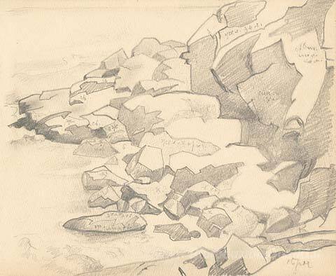 Ti offriamo una riproduzione artigianale su tela dell'opera famosa 'Monhegan (studio)' di Nicholas Roerich, dal Museo delle Riproduzioni.