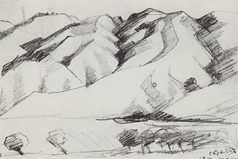 Ti offriamo una riproduzione artigianale su tela dell'opera famosa 'Montagne' di Martiros Saryan, dal Museo delle Riproduzioni.