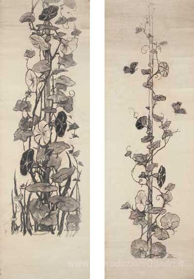 Ti offriamo una riproduzione artigianale su tela dell'opera famosa 'Moth e Convolvulus (pannelli di anteprima)' di Wilhelm Kotarbinski, dal Museo delle Riproduzioni.