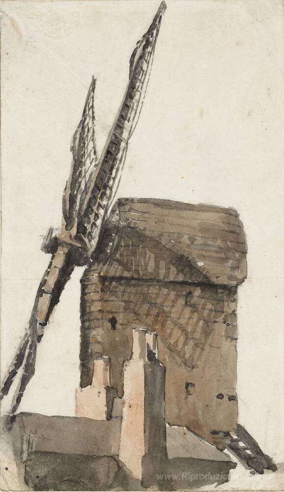 Ti offriamo una riproduzione artigianale su tela dell'opera famosa 'Mulino a vento' di David Cox, dal Museo delle Riproduzioni.