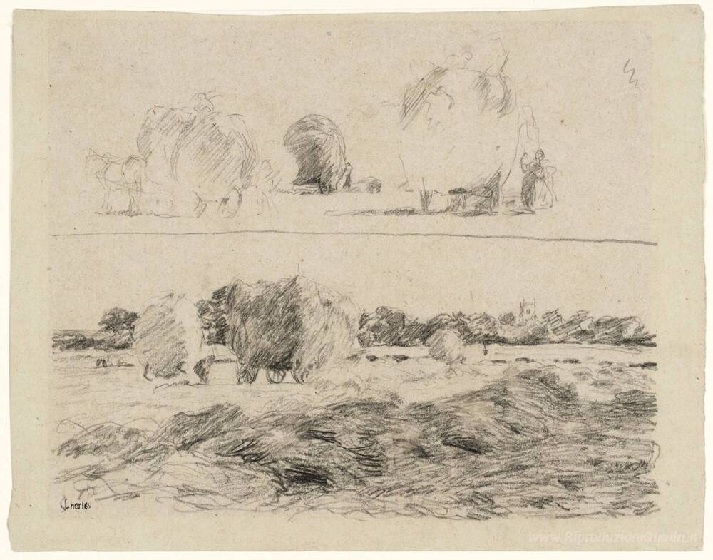 Ti offriamo una riproduzione artigianale su tela dell'opera famosa 'Nella Hayfield: due studi' di James Charles, dal Museo delle Riproduzioni.