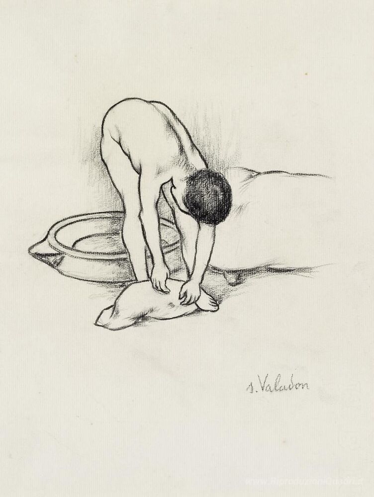 Ti offriamo una riproduzione artigianale su tela dell'opera famosa 'Nudo Femminile, lavarsi' di Suzanne Valadon, dal Museo delle Riproduzioni.