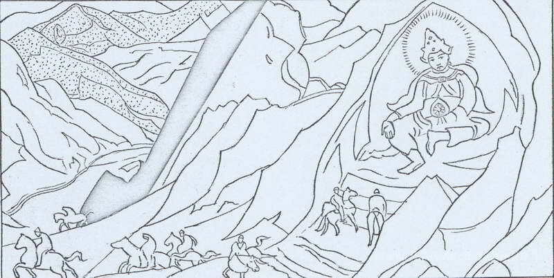 Ti offriamo una riproduzione artigianale su tela dell'opera famosa 'Ordine di Rigden Jyepo (studio)' di Nicholas Roerich, dal Museo delle Riproduzioni.